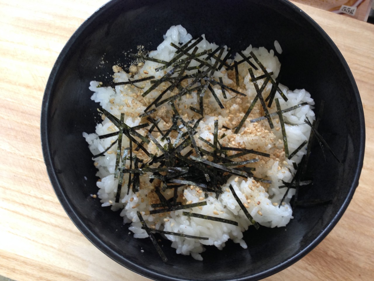 3.市販のすりごま、市販の刻み海苔をふりかける。